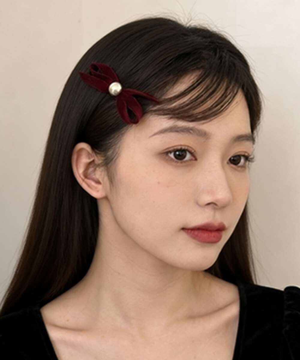 ベロア調 リボン ヘアクリップ 大人 可愛い