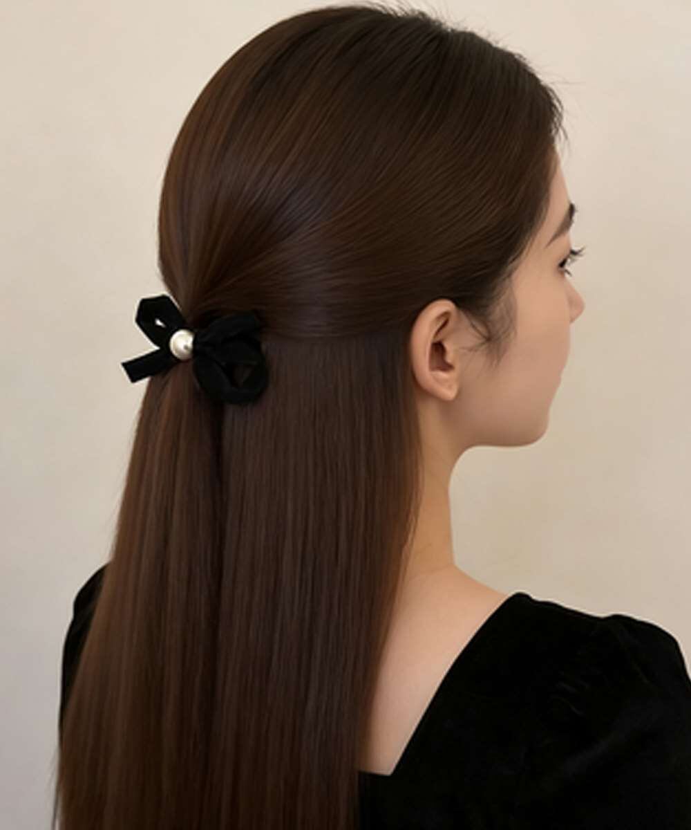ハーフアップやポニーテール、まとめ髪にさっと留めるだけで、こなれ感のあるスタイルに仕上がる。