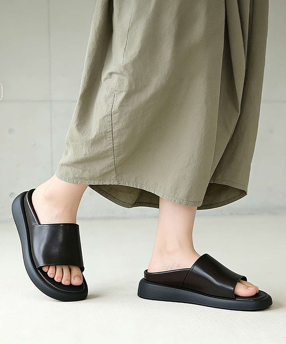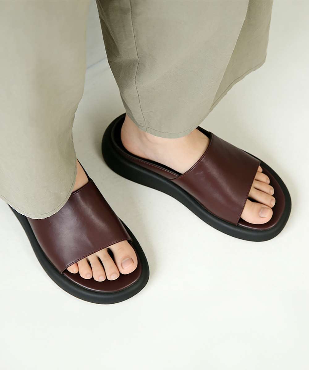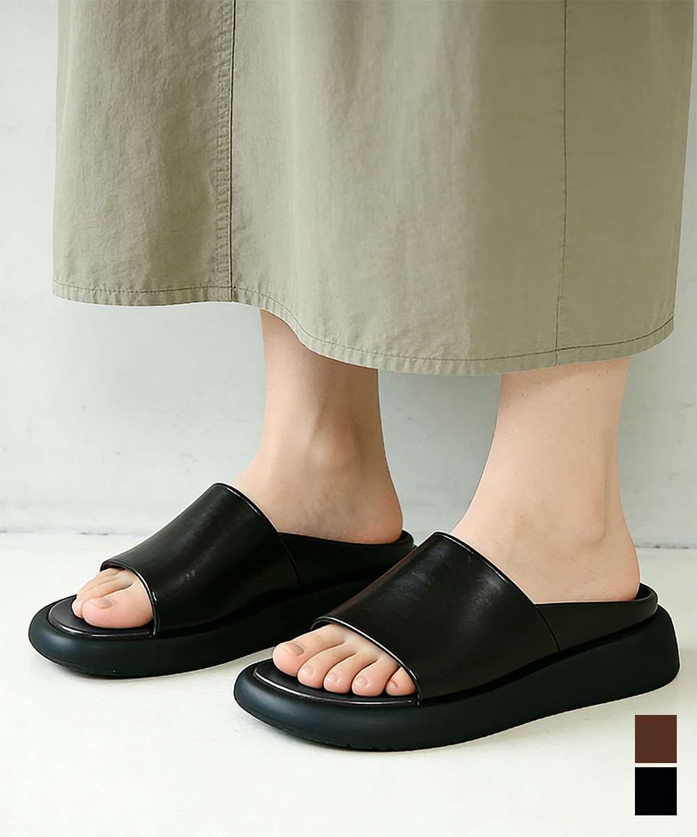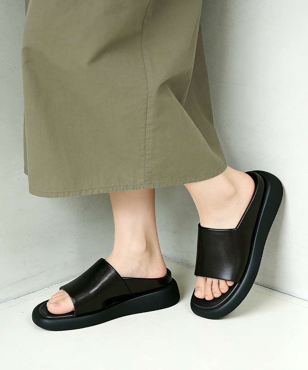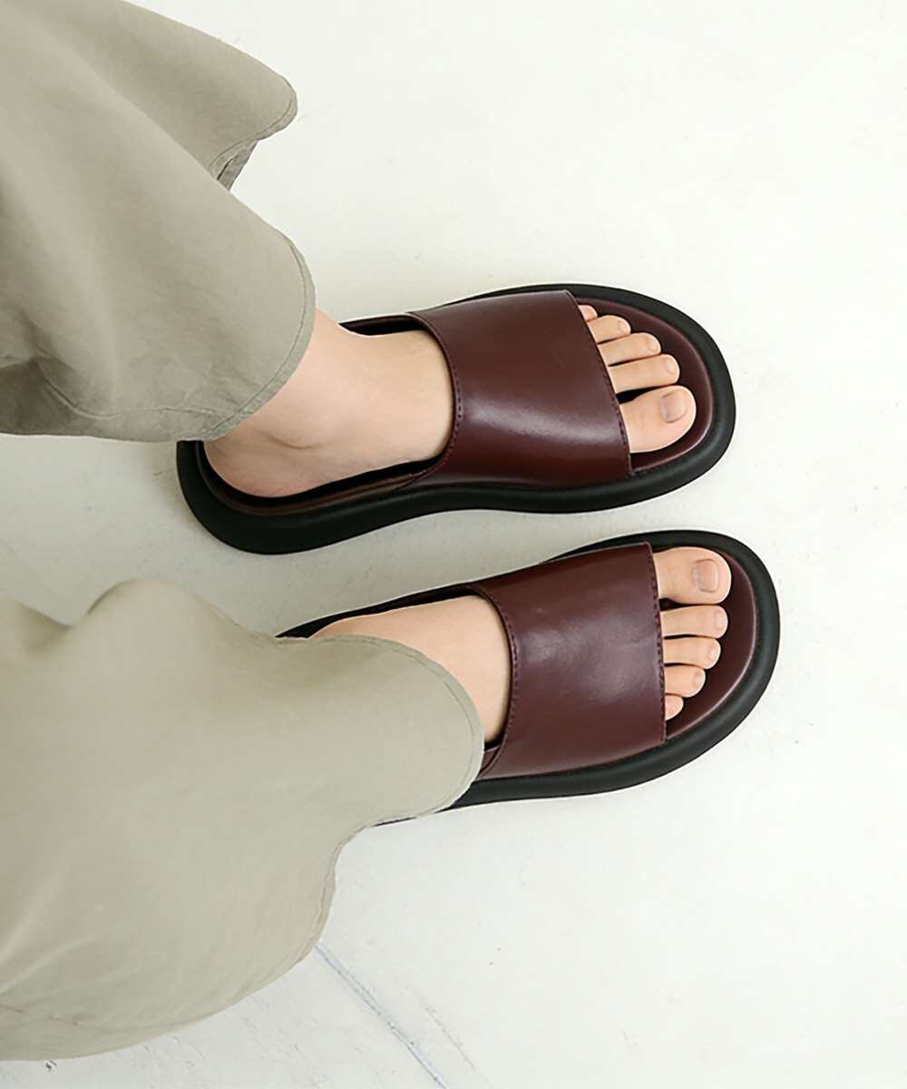 シンプルで洗練されたデザインが魅力のフラットサンダルです。