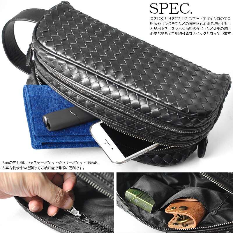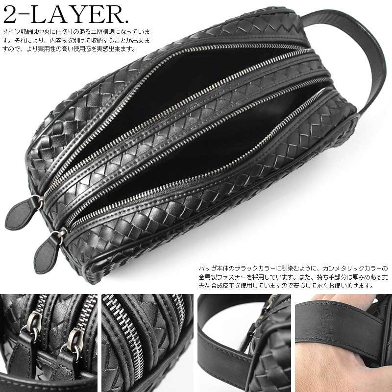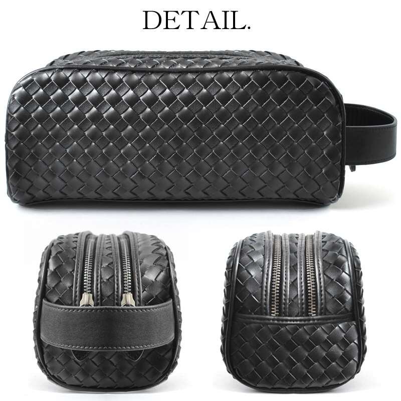 陰影が織りなす圧倒的な高級感が特徴の編み込み素材を使用したセカンドバッグ。