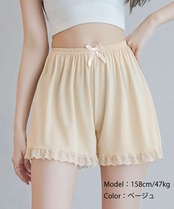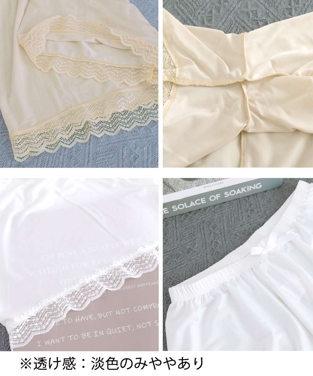 やわらかな素材のレース切り替えペチパンツ。