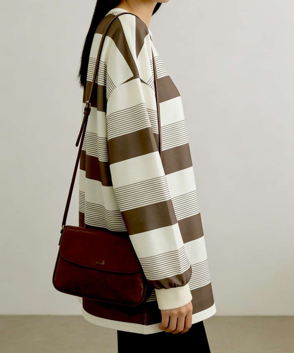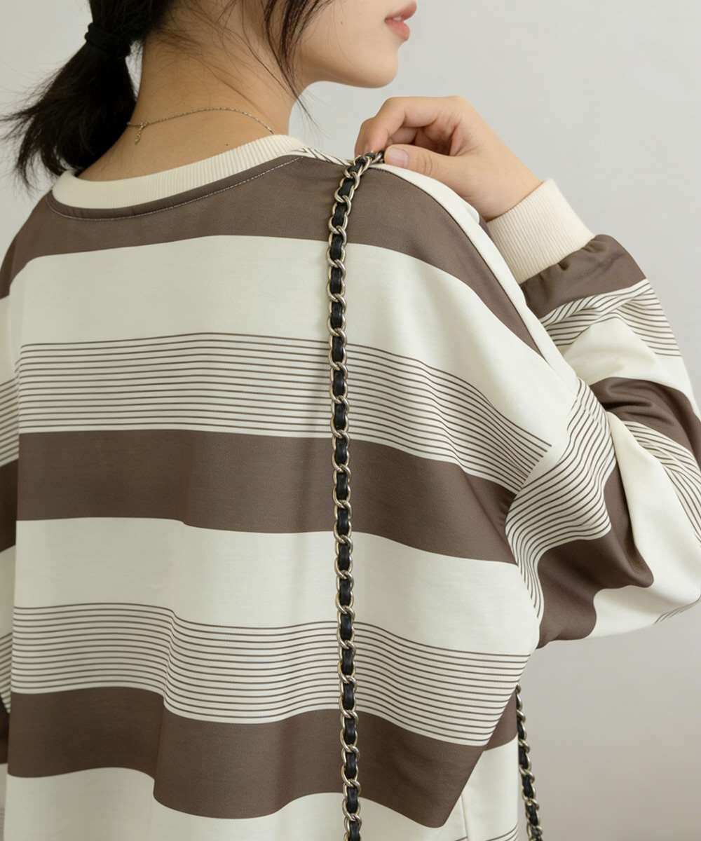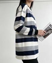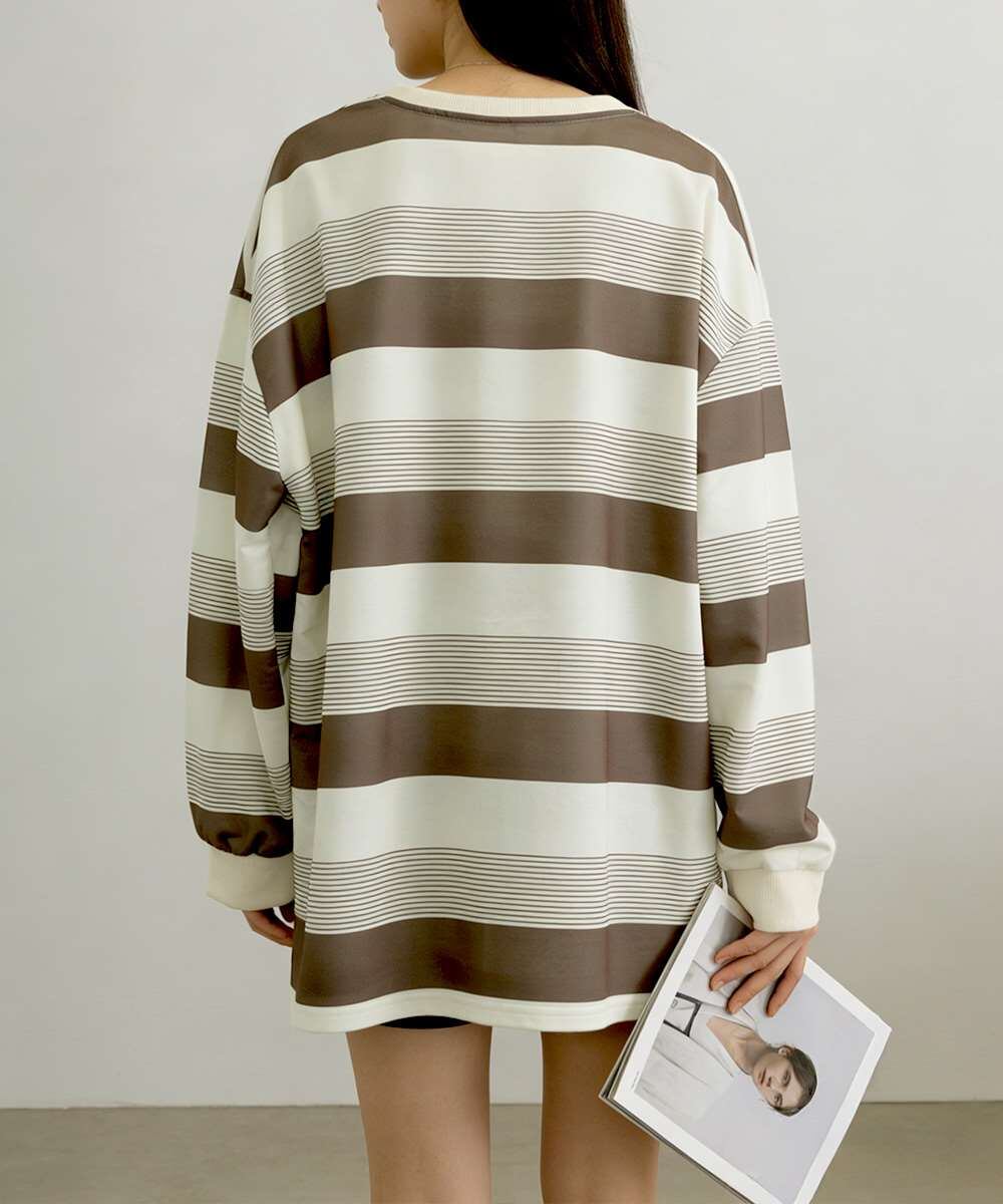 旬のオーバーサイズで、ゆったりとしたこなれ感のあるボーダー柄ロングスリーブTシャツ。