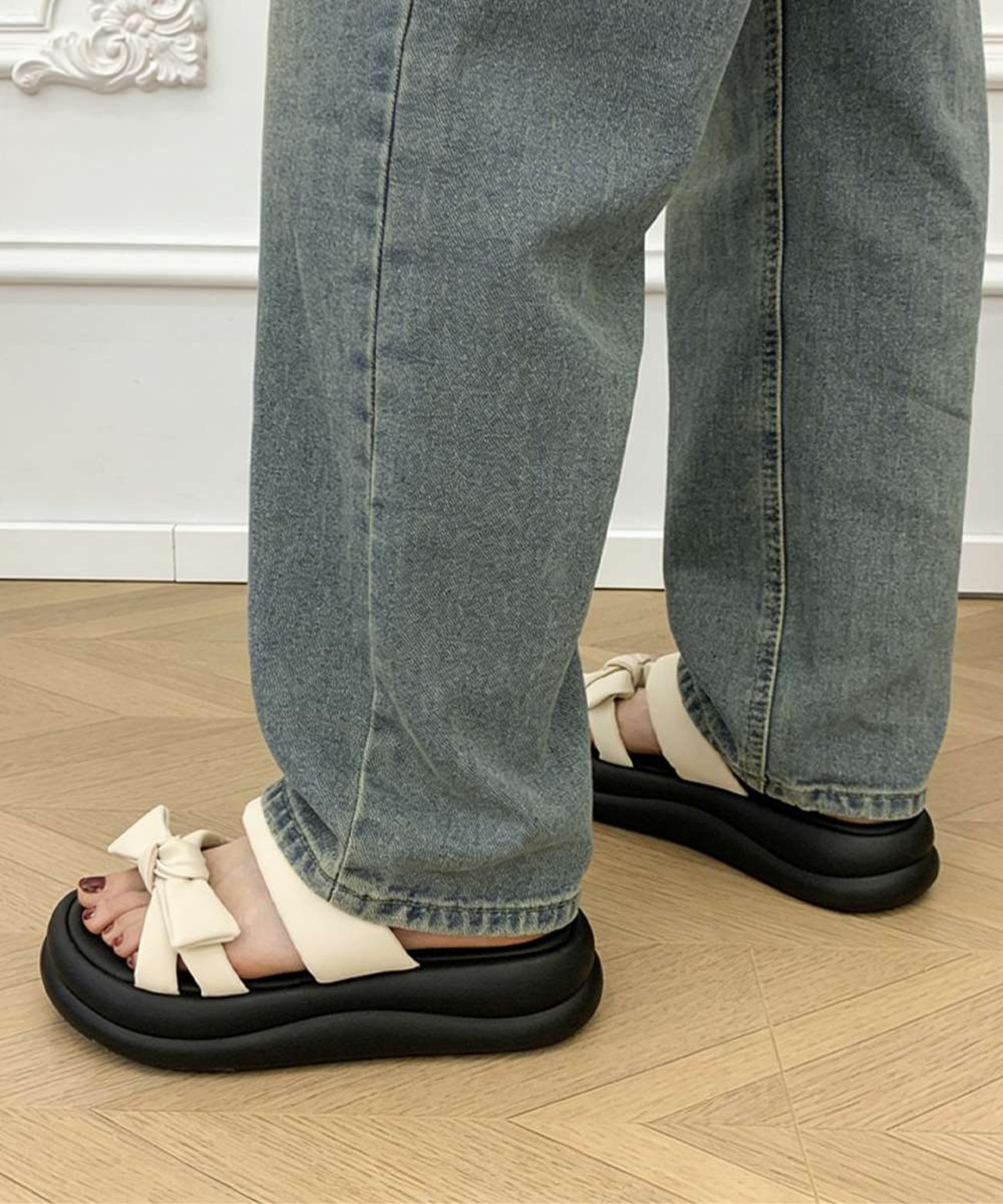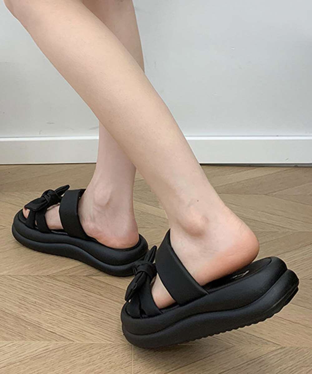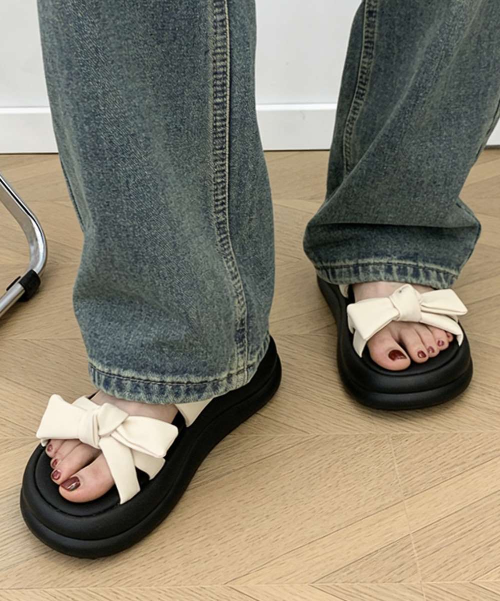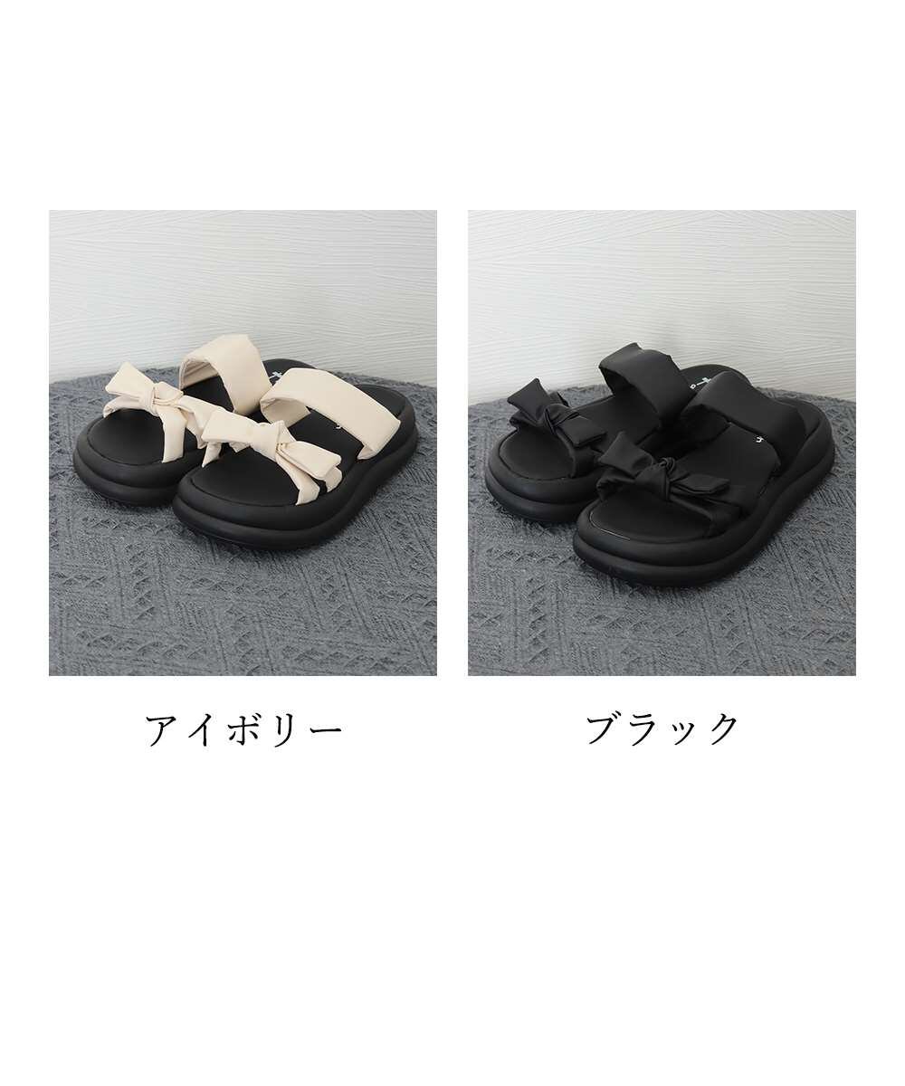リボンデザインが目を引く、ボリュームソールサンダル。