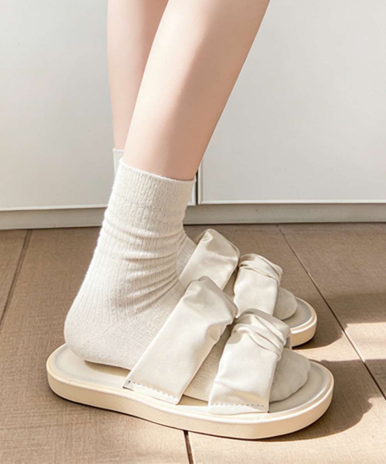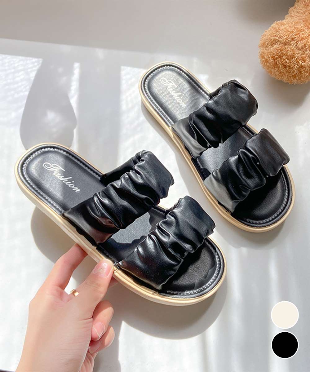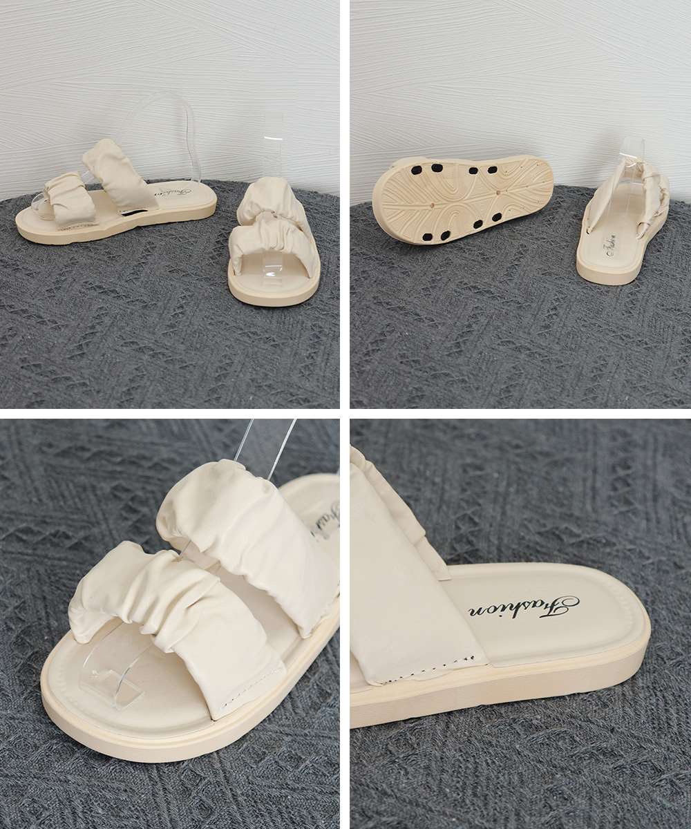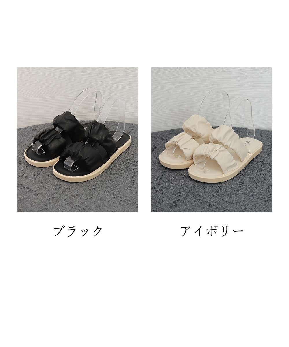 スリッパ サンダル レディース ギャザー