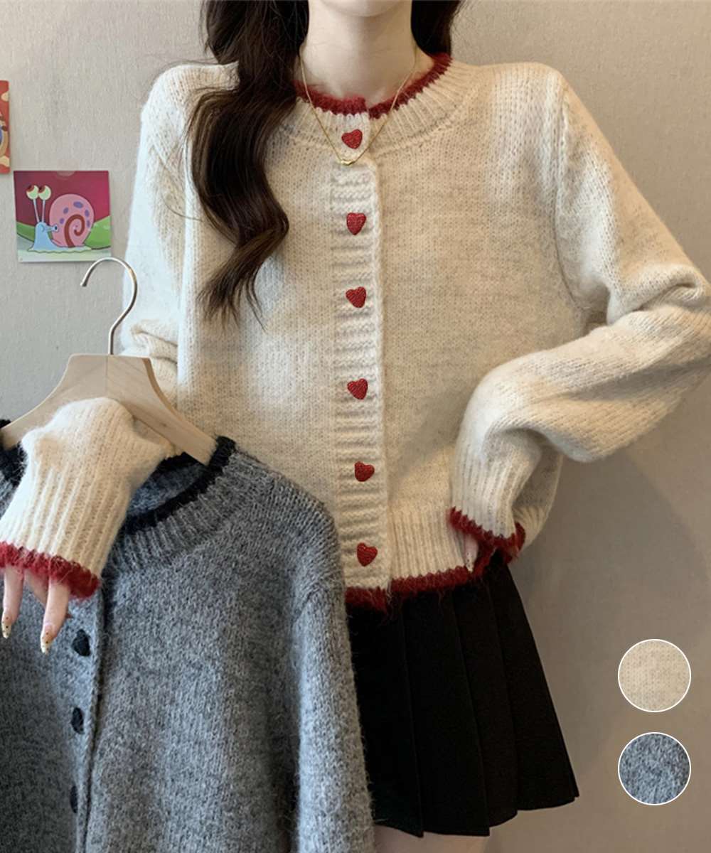 ハートボタン ニット カーディガン 長袖 韓国風