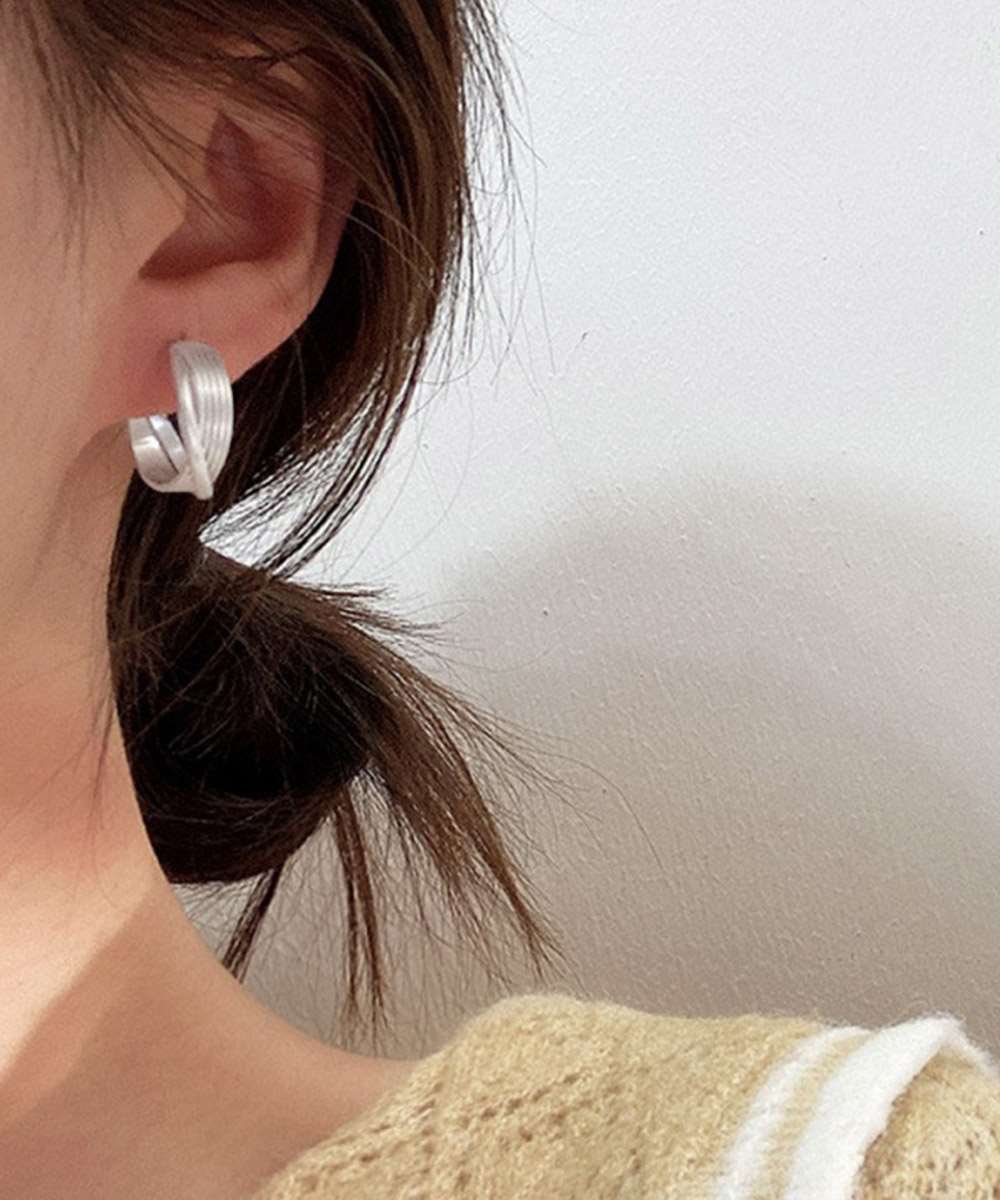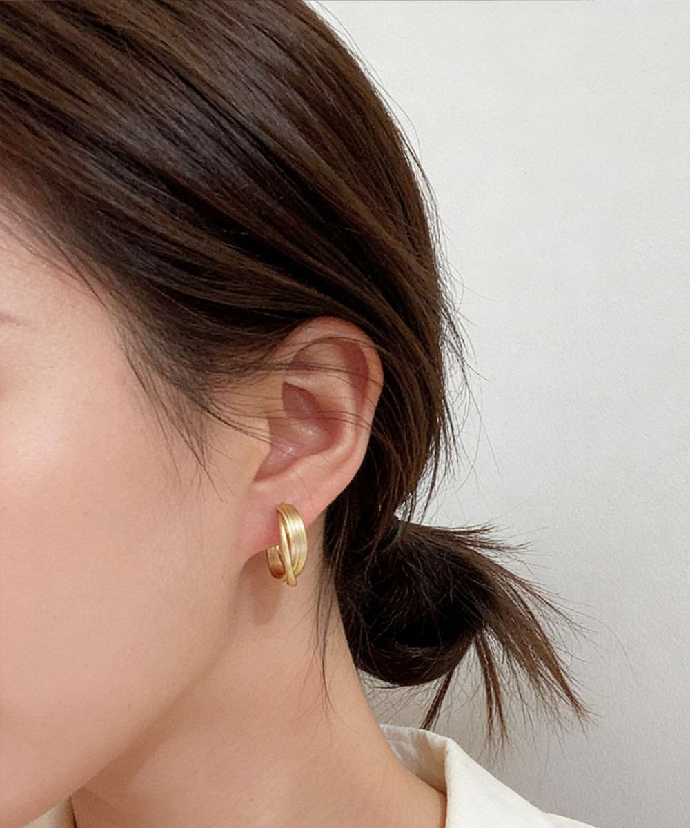 ミニマルなラインデザインが魅力のメタルフープピアス。