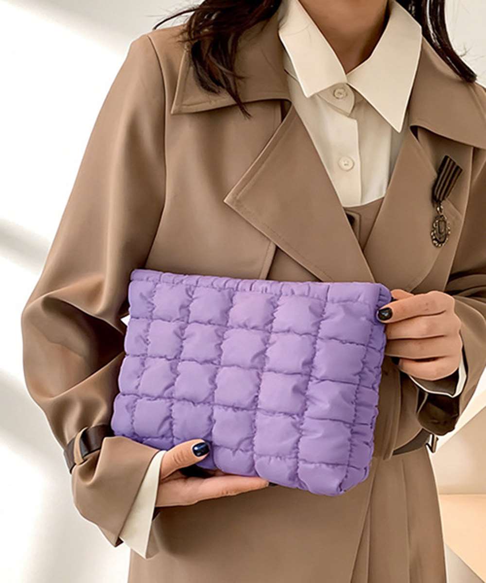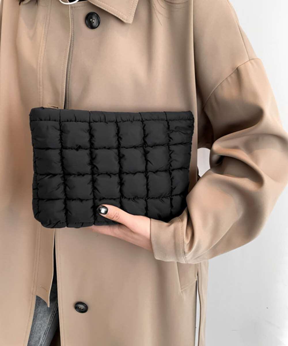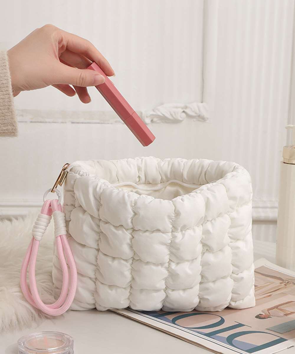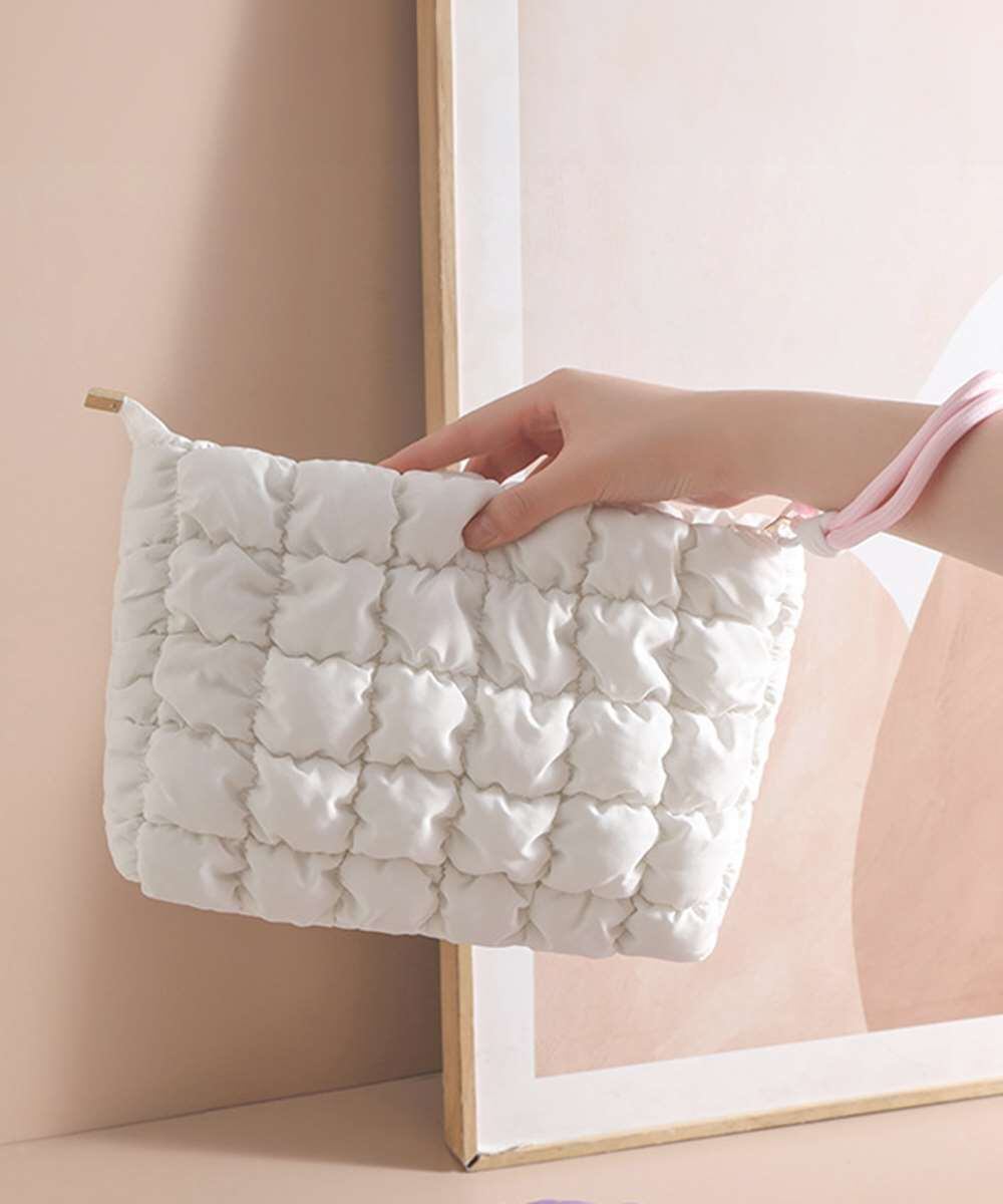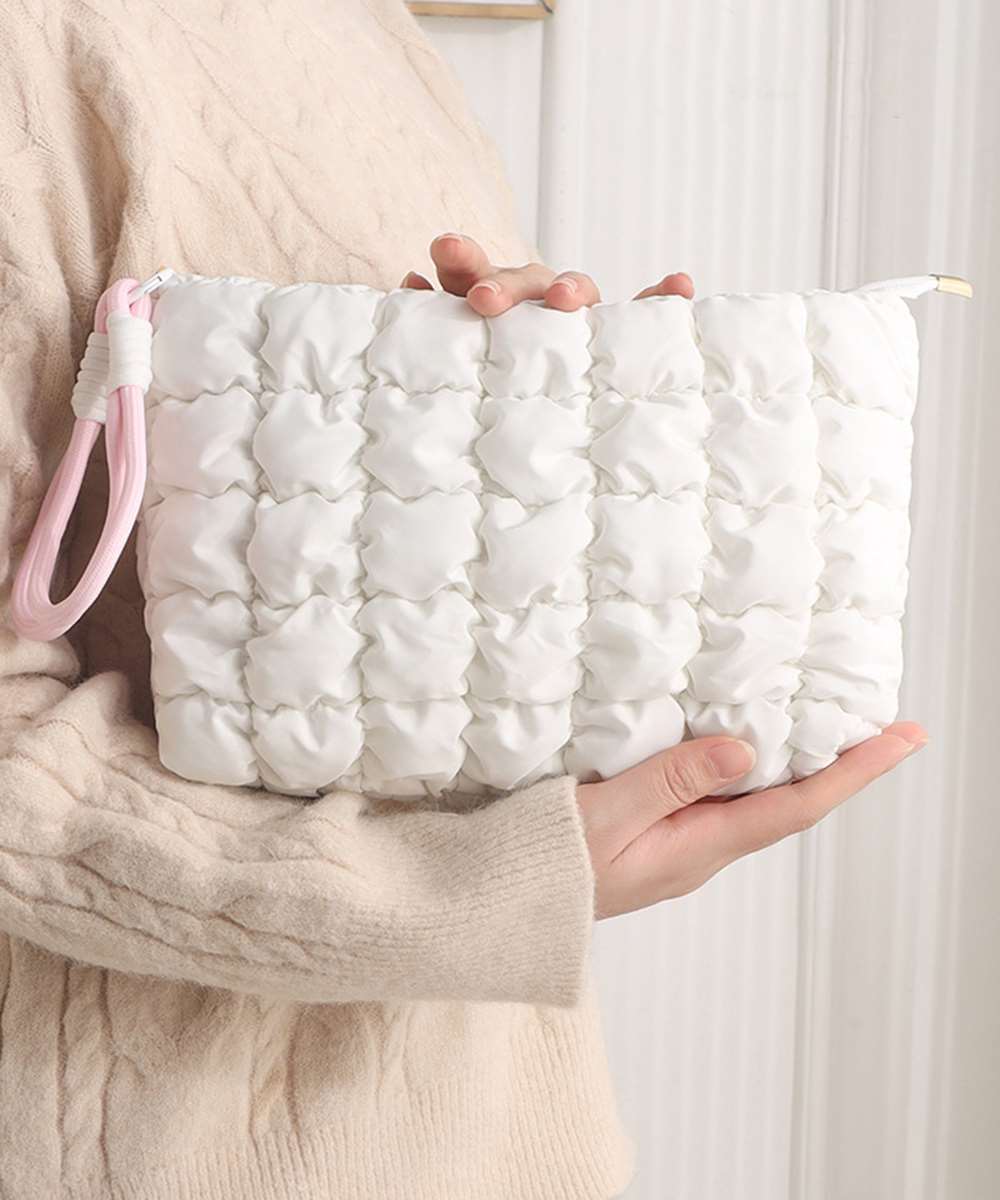 立体感のあるキルティング風デザインが目を引く、可愛らしいポーチ。