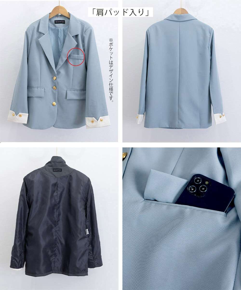 上品な金ボタンがアクセントになった、洗練されたテーラードジャケット。