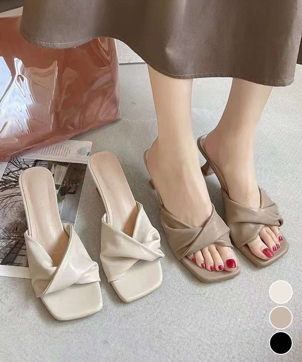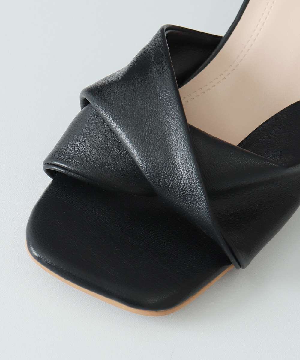 ねじりデザインがアクセントになった、シルエットがきれいなヒールミュールサンダル。