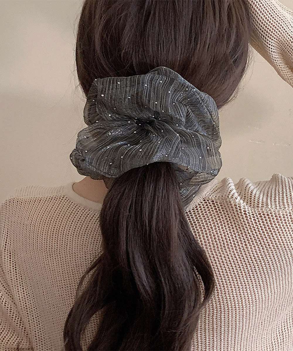 繊細なラメドットが散りばめられた、シアー素材のシュシュ。