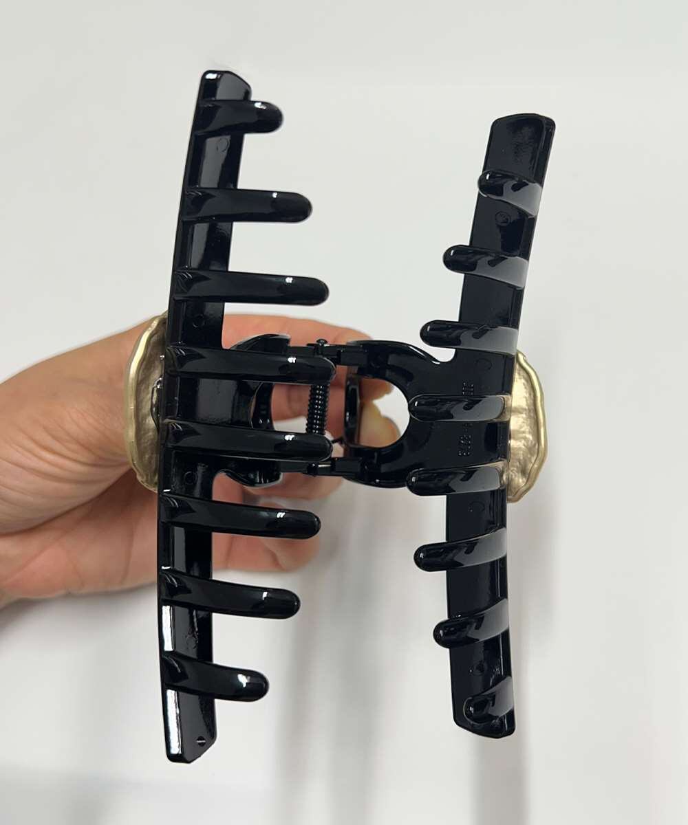 メタルプレートがアクセントになったバンスクリップ。