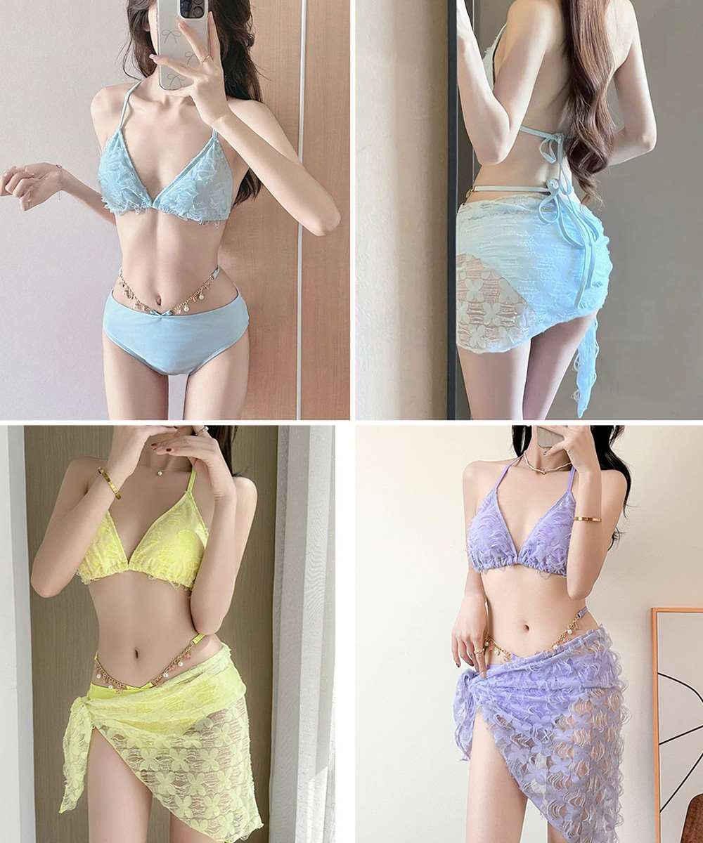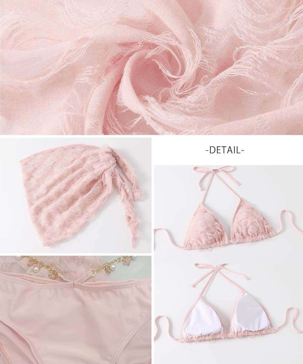 セクシーなシルエットを引き立てる、ビキニ+スカートの3点セット水着。