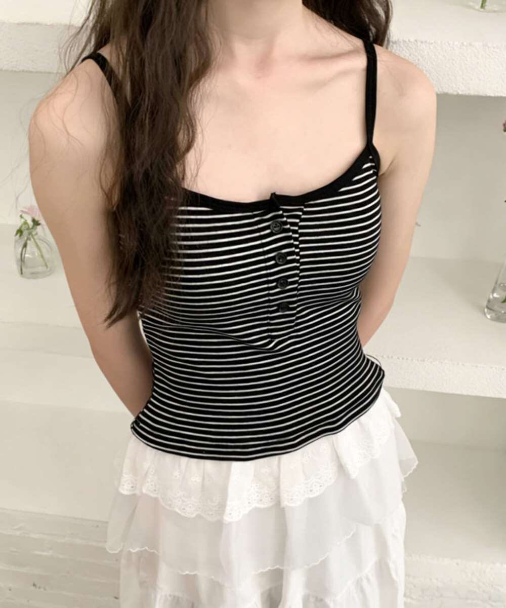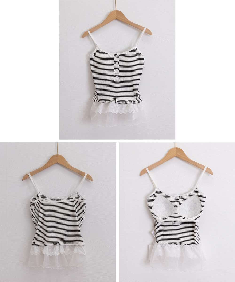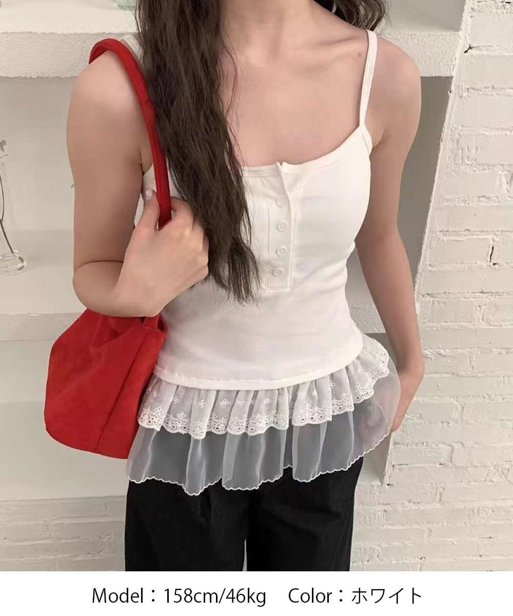 カップ付き レース裾 キャミソール 韓国風