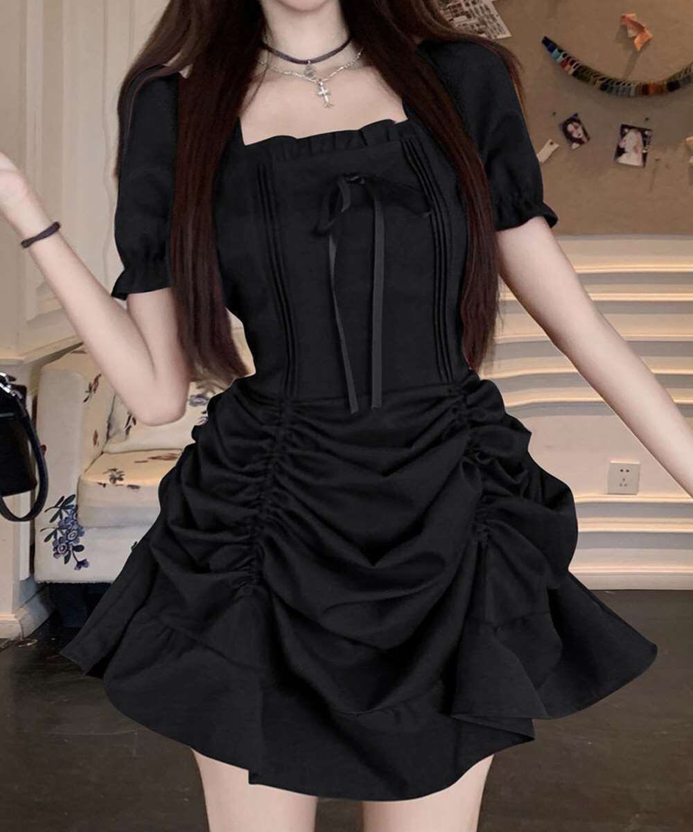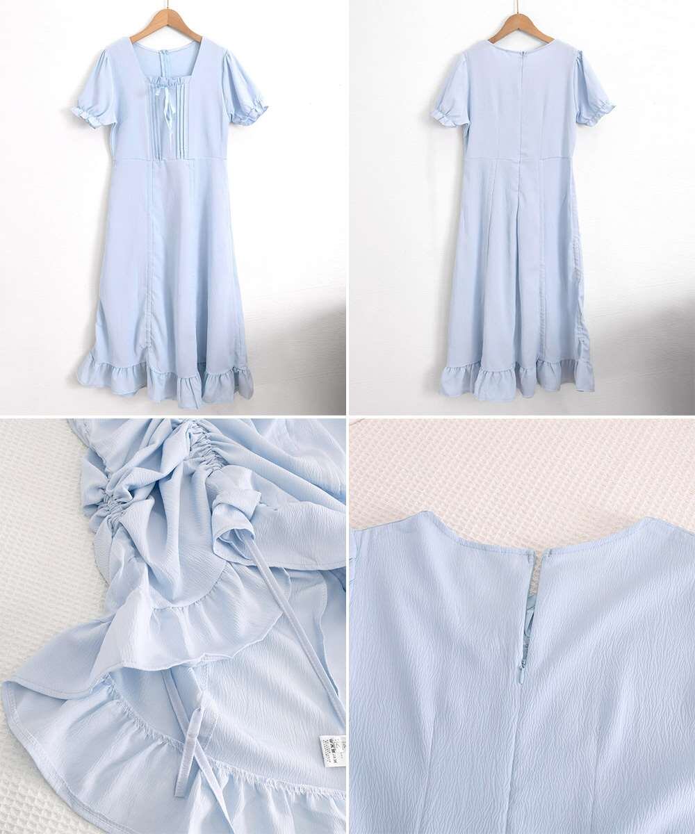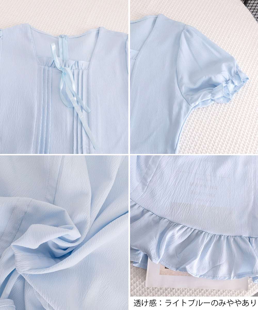 リボン×パフスリーブ×フリルが、フェミニンな雰囲気のデザイン。