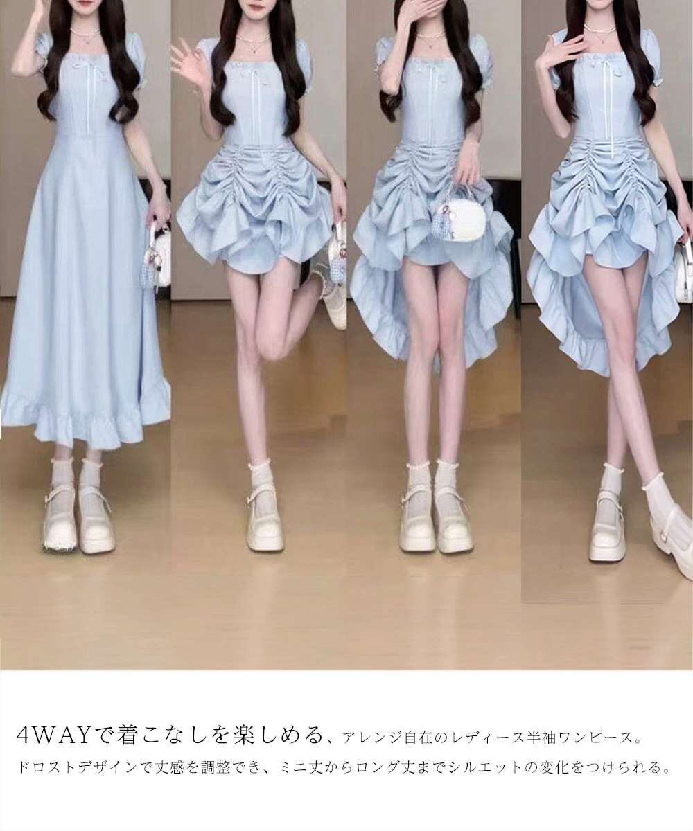 4WAYで着こなしを楽しめる、アレンジ自在のレディース半袖ワンピース。