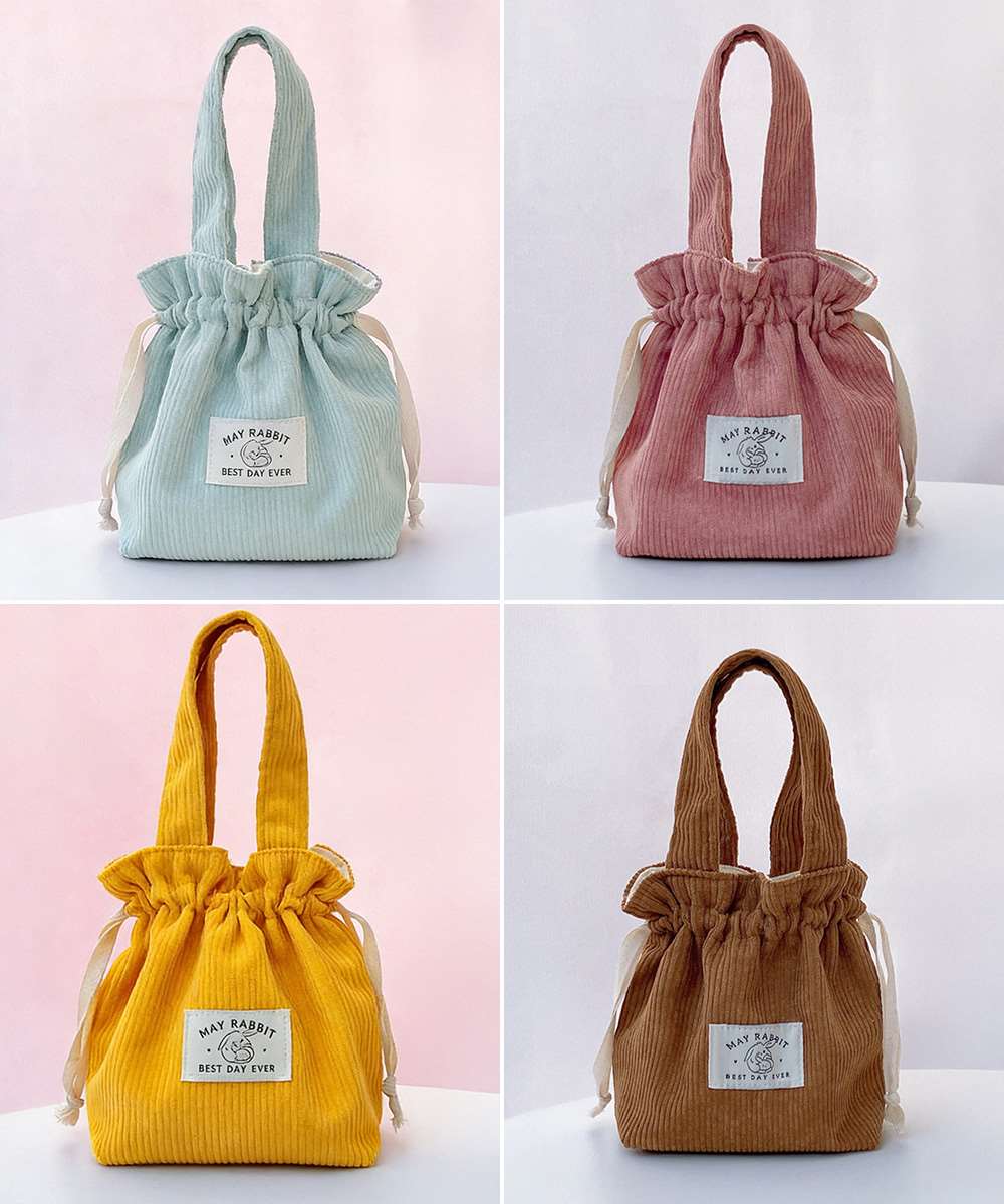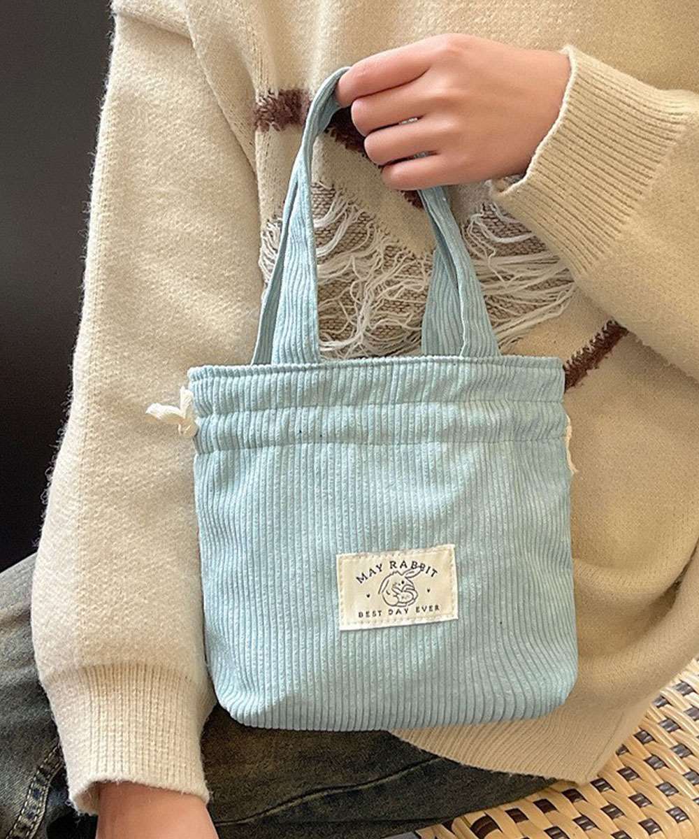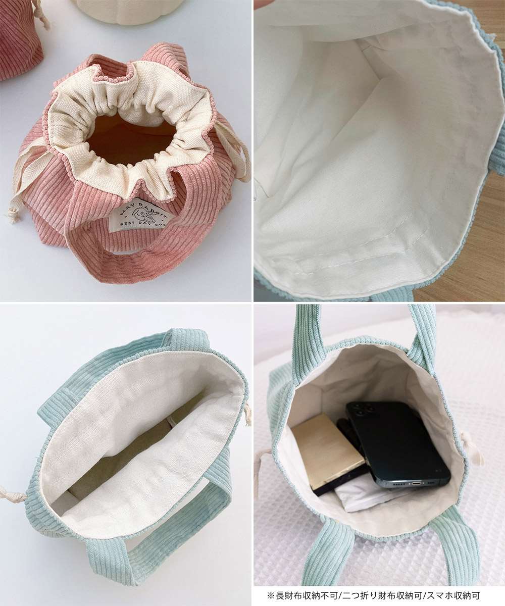 ミニ トートバッグ コーデュロイ巾着 鞄 軽量