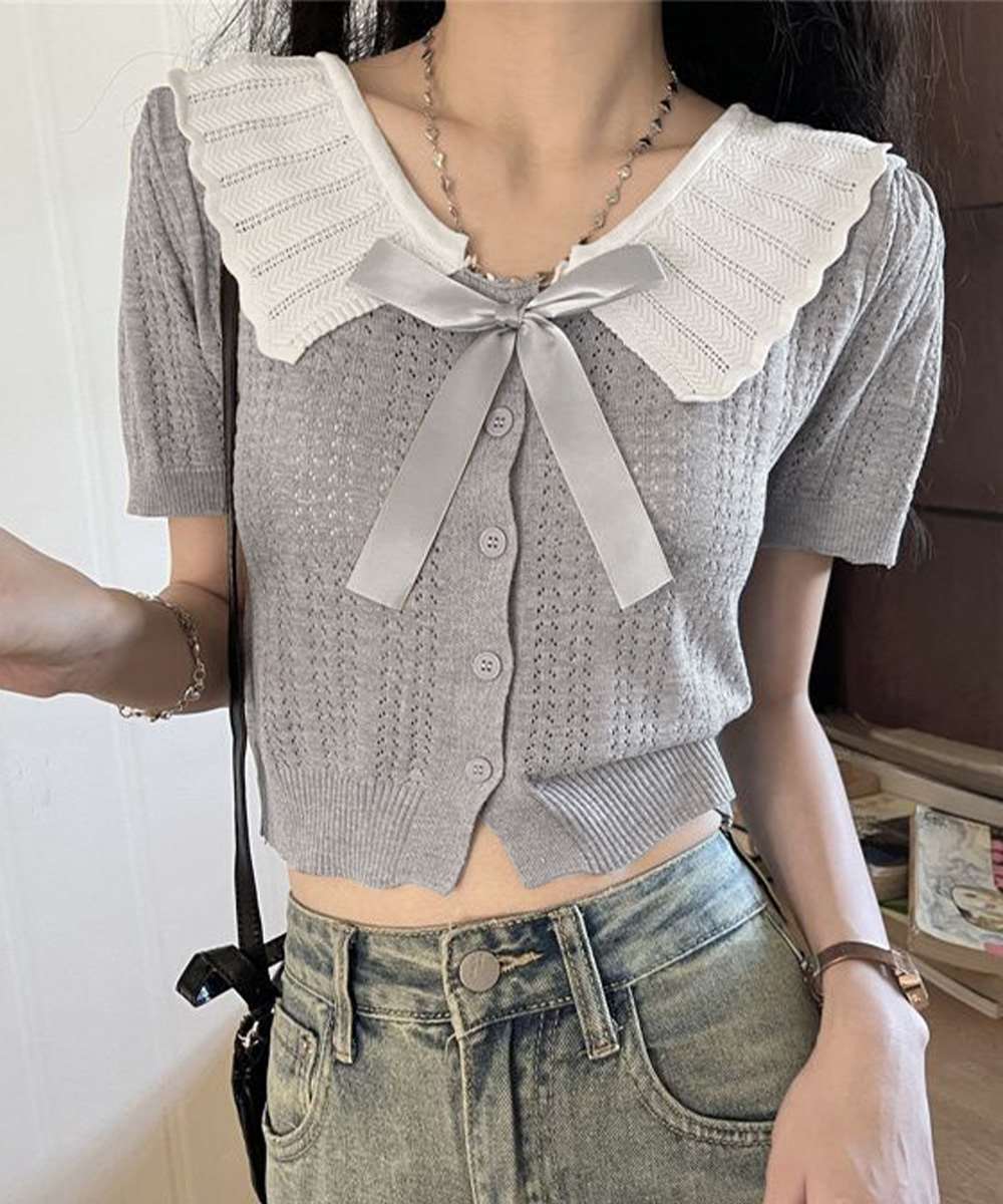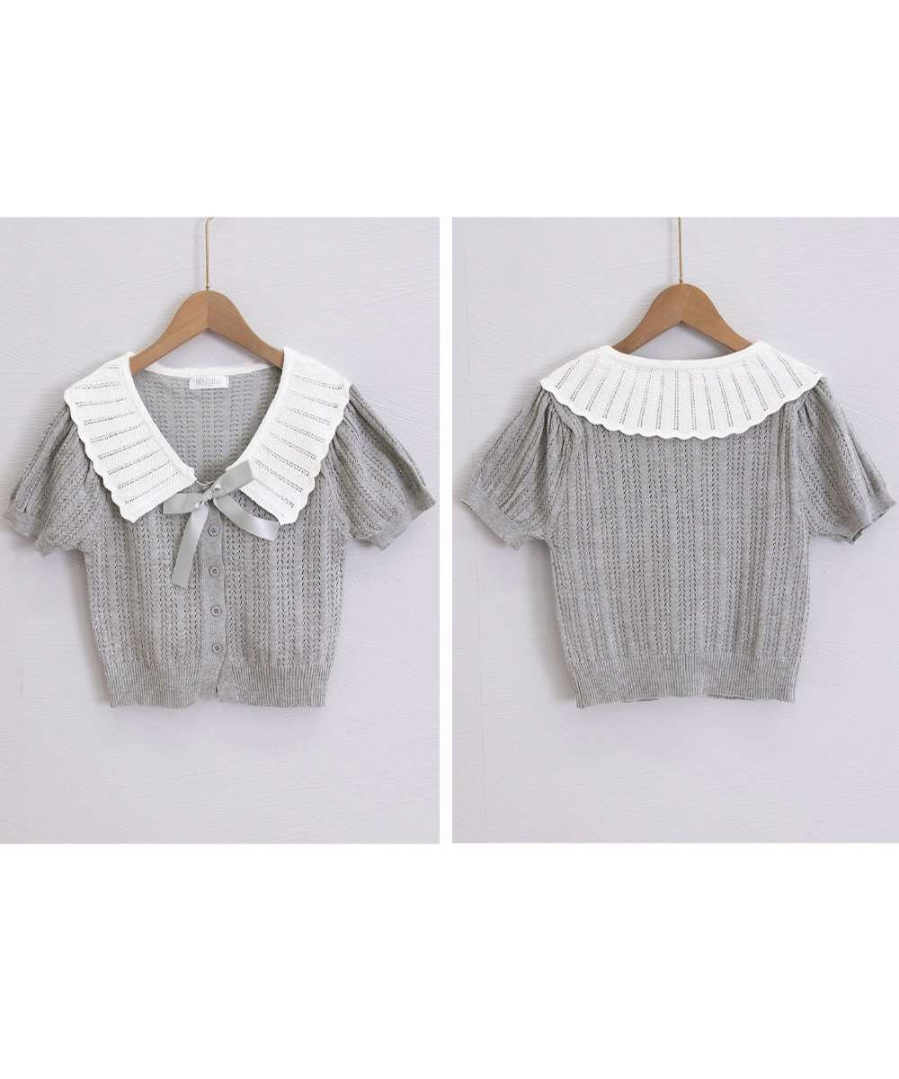 スカラップ襟 ニット 透かし編み カーディガン