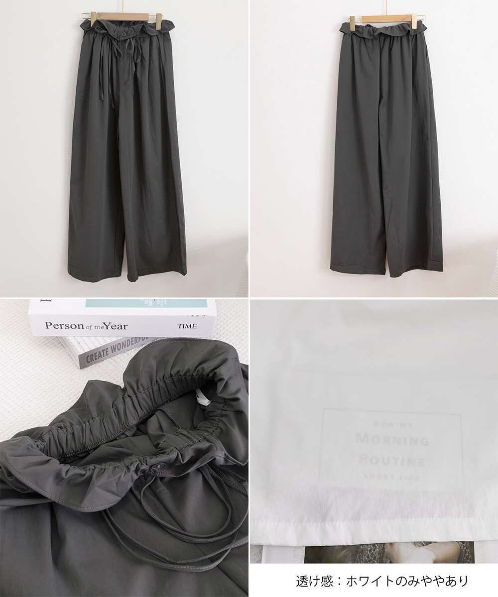 ワイド パンツ ウエストフリル ロング パンツ