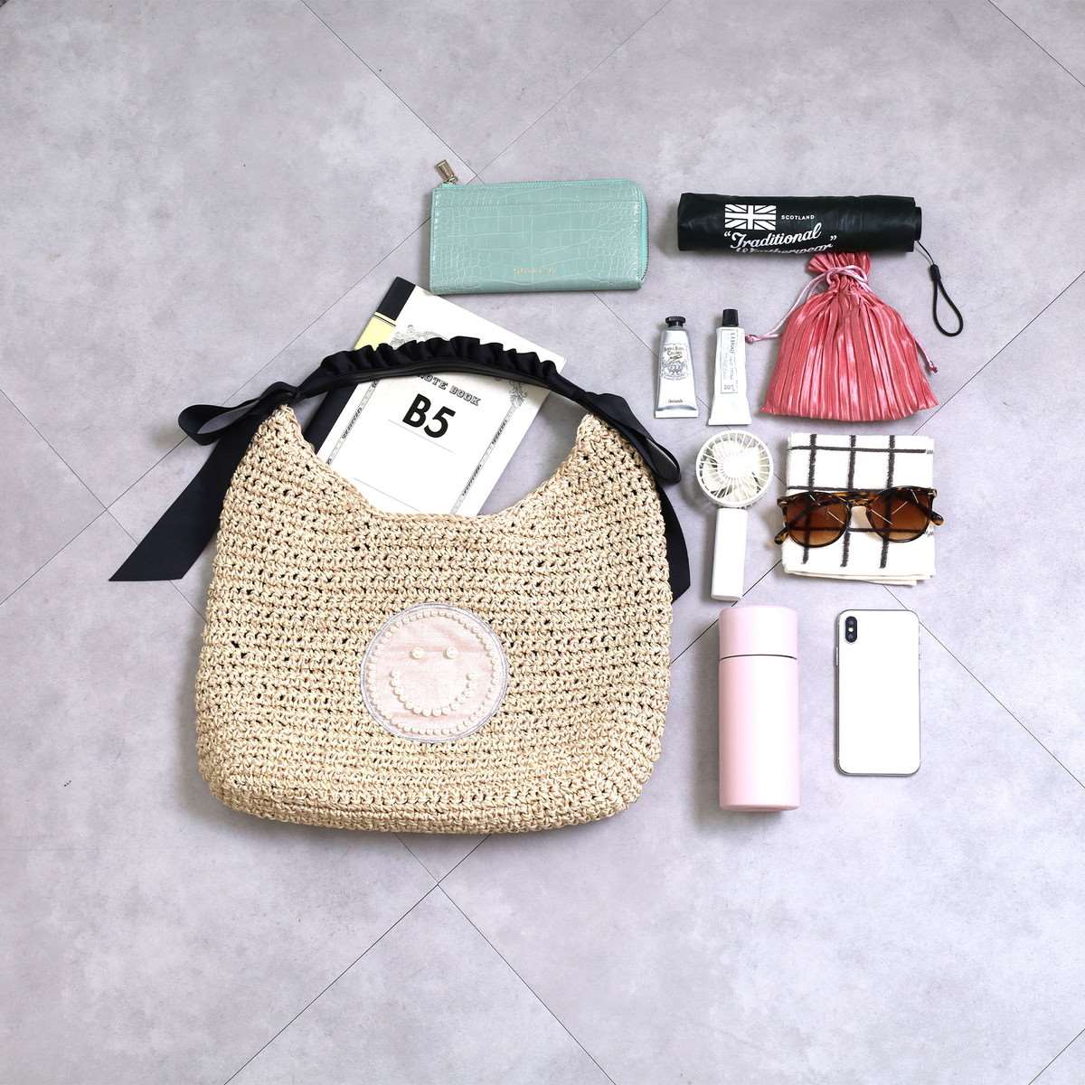 ハンドルのフリルとビジューのSMILEYフェイスがポイント!