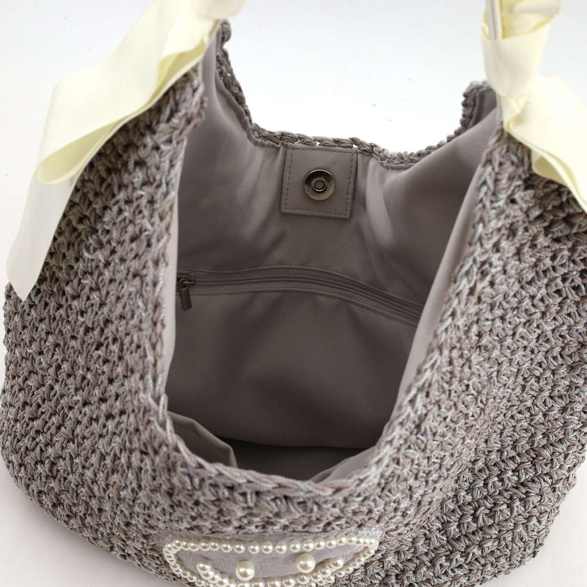 COOCO クーコ SMILEY パール刺繍 フリルハンドル ペーパー カゴバッグ