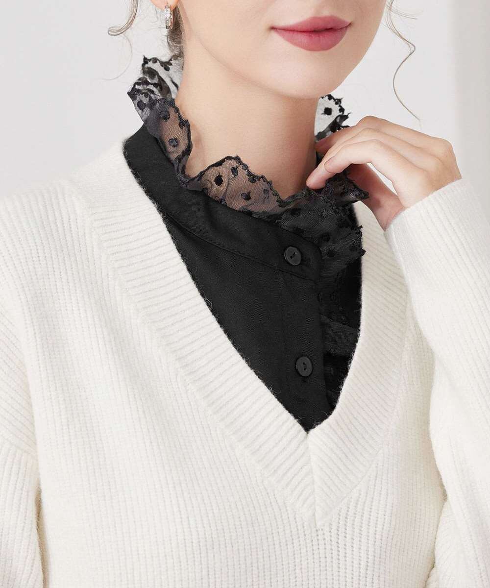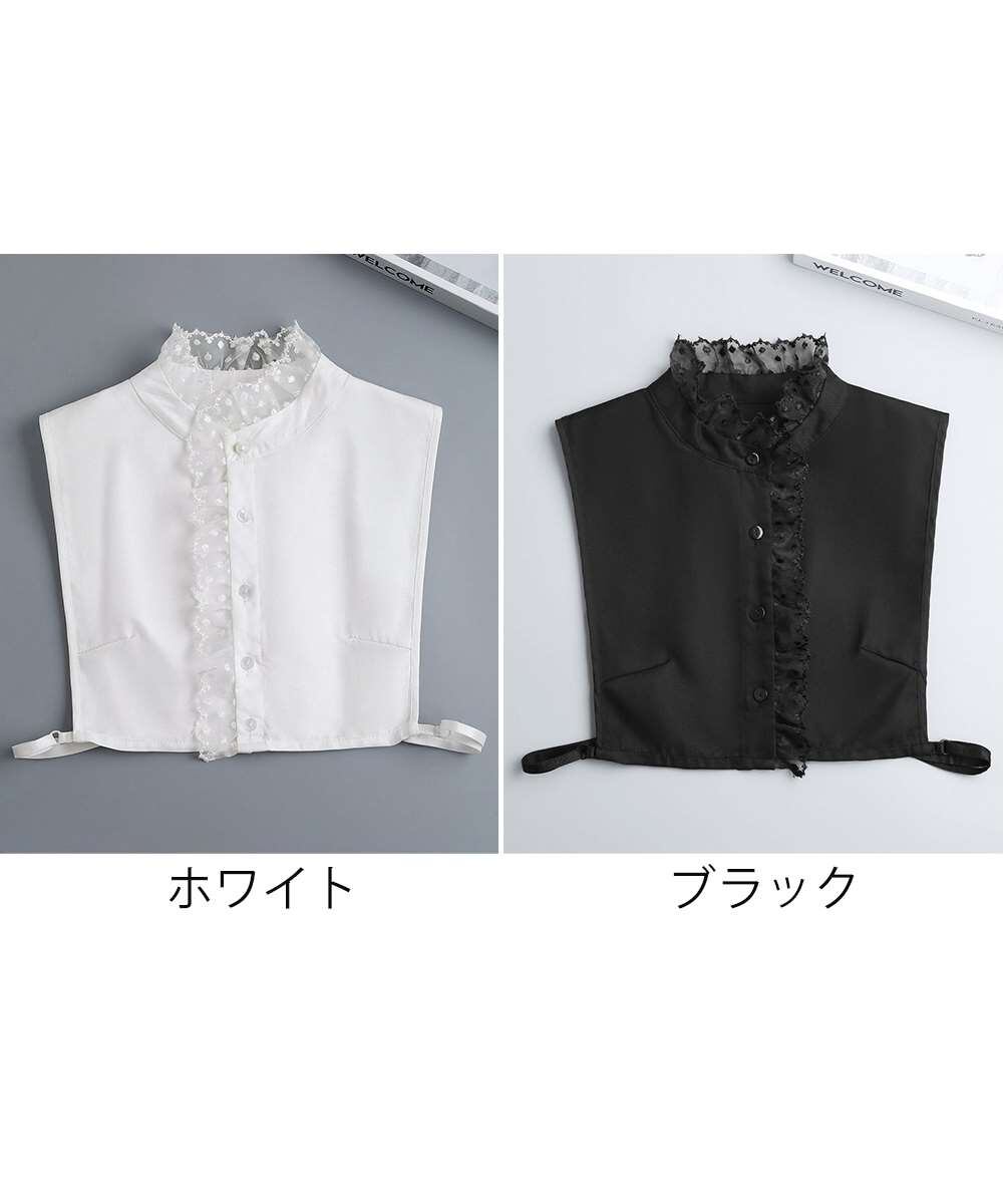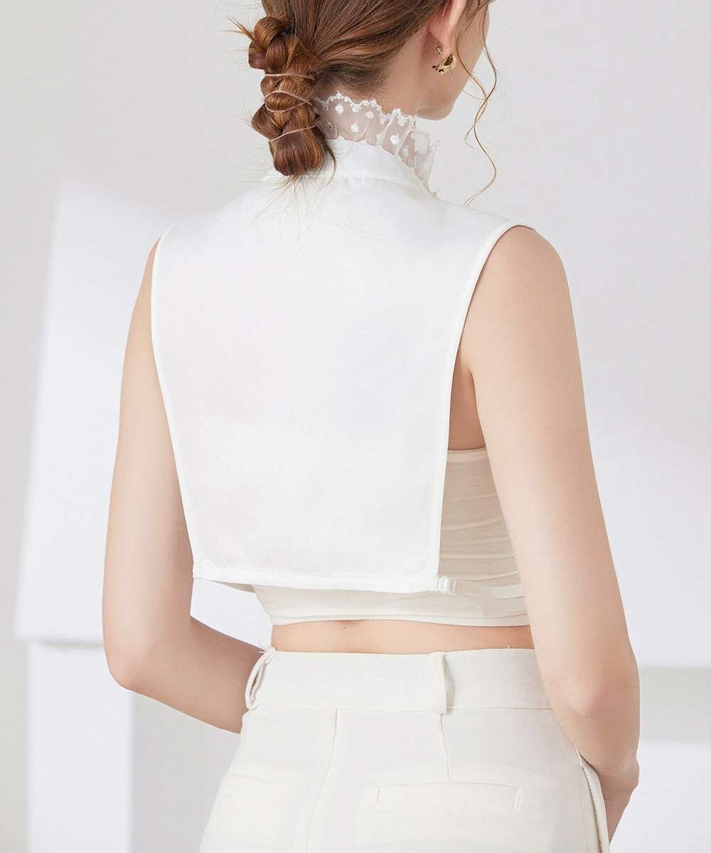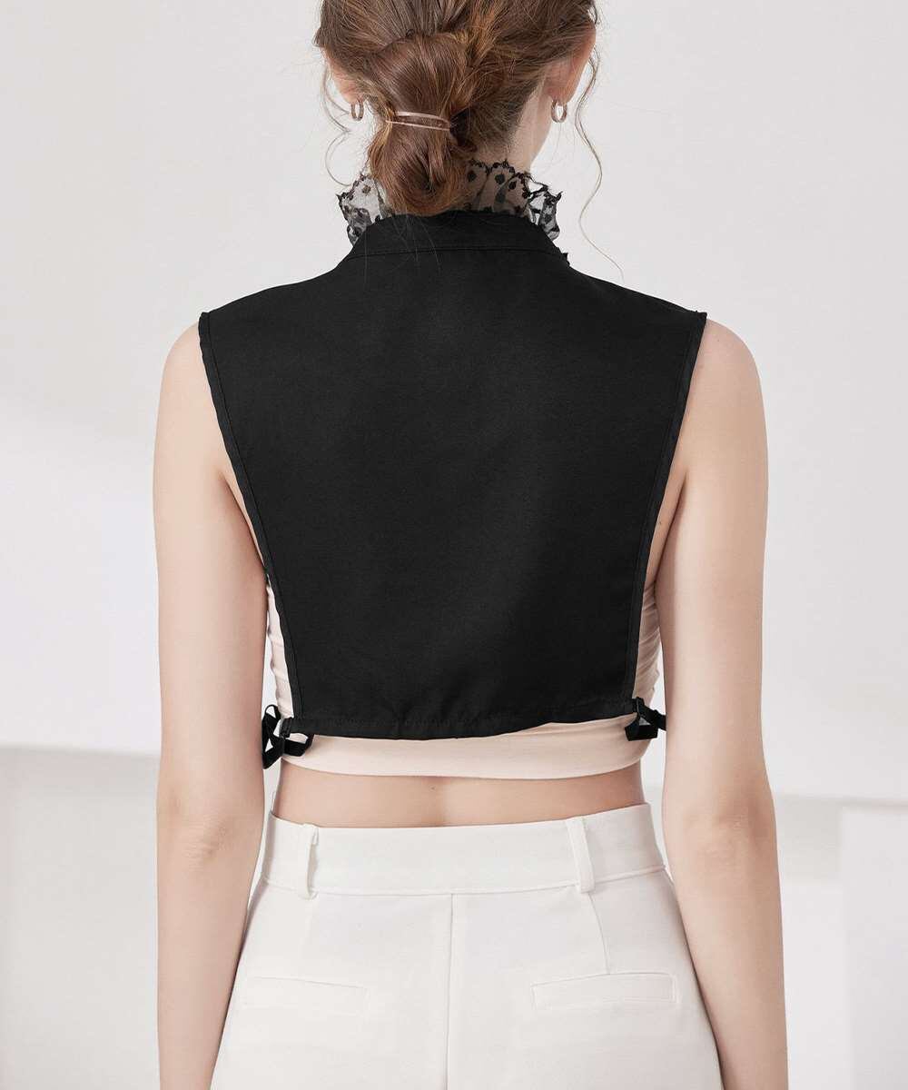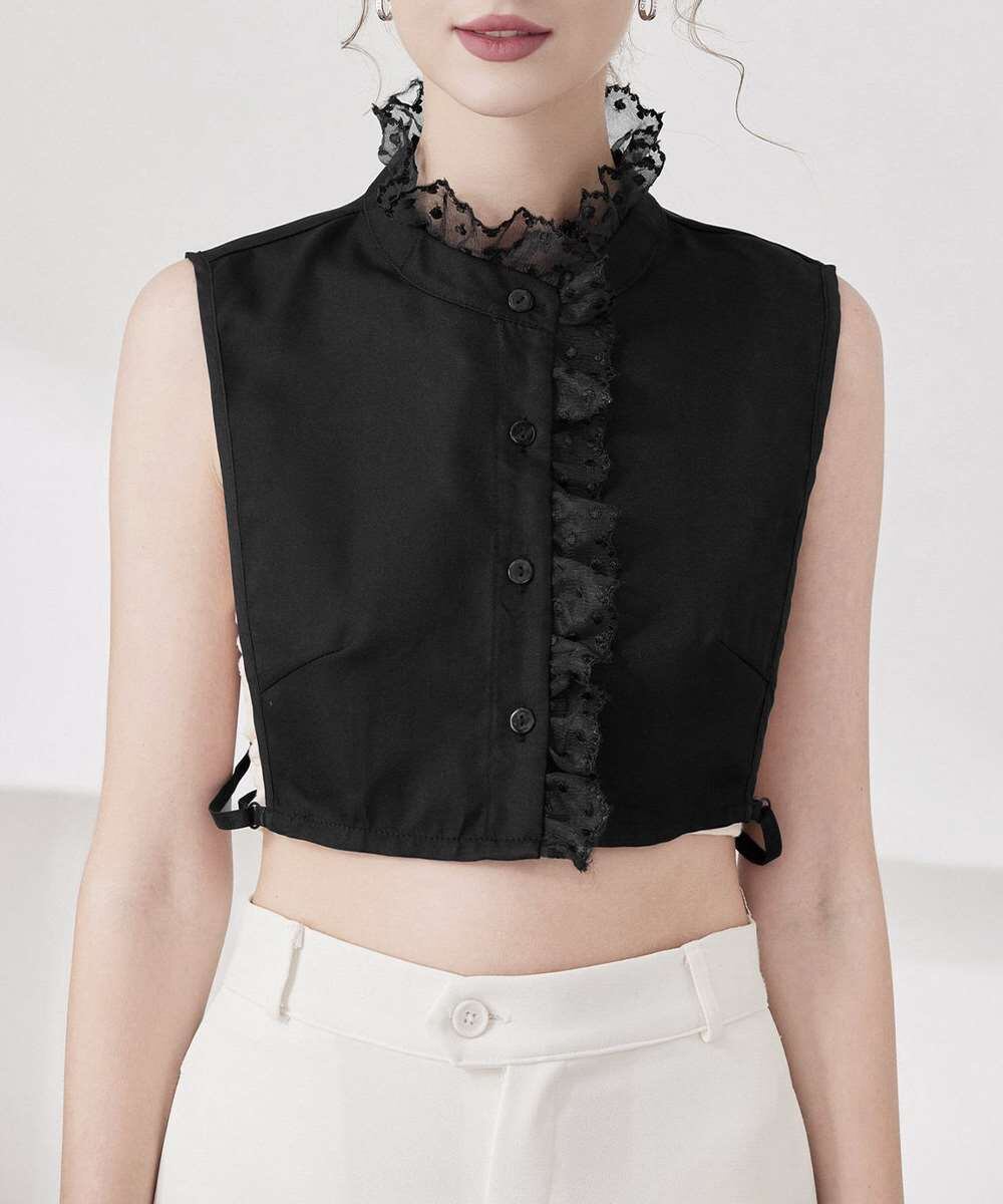 レース付きスタンドカラーのブラウス風ベスト型付け襟。
