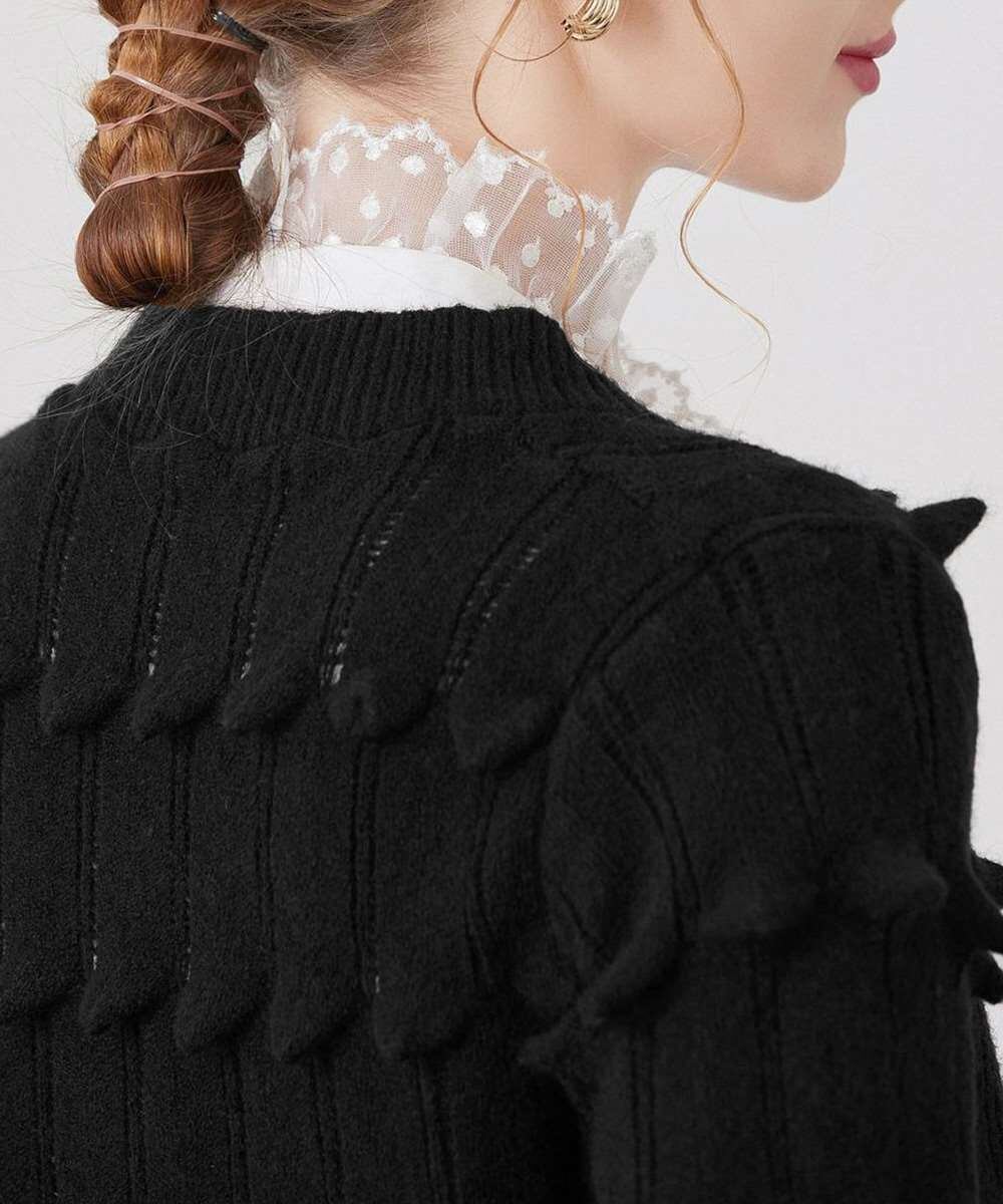 繊細なレースデザインが首元を華やかに見せ、手軽に重ね着風スタイルを楽しめる。