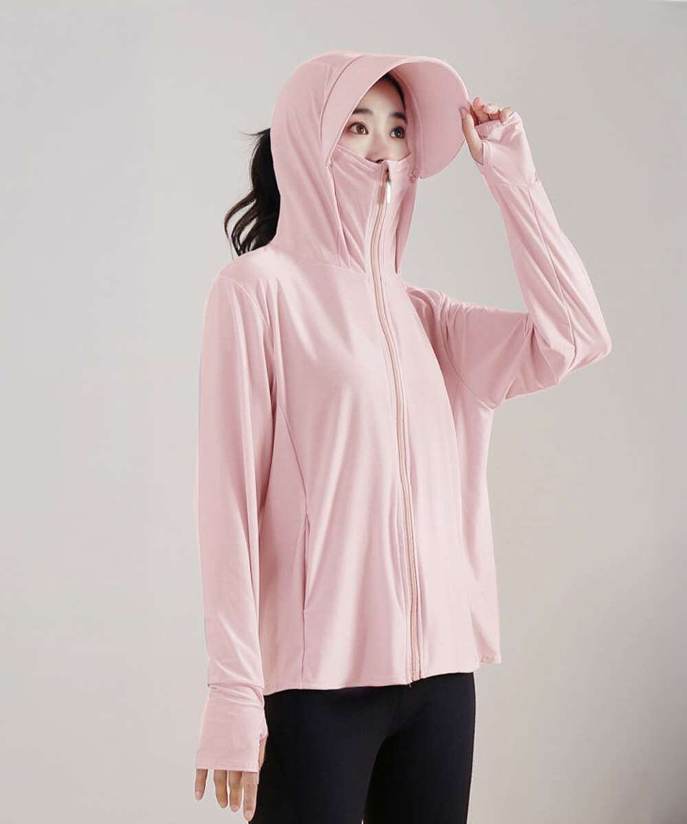 【着る日傘】とろみ素材のつば付きマスクパーカー