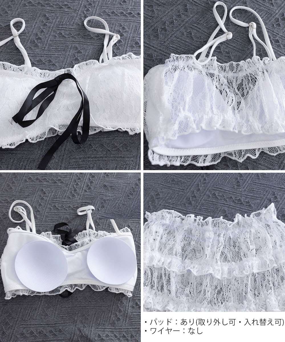 フリルデザインとリボンディテールが可愛らしさを引き立てる。