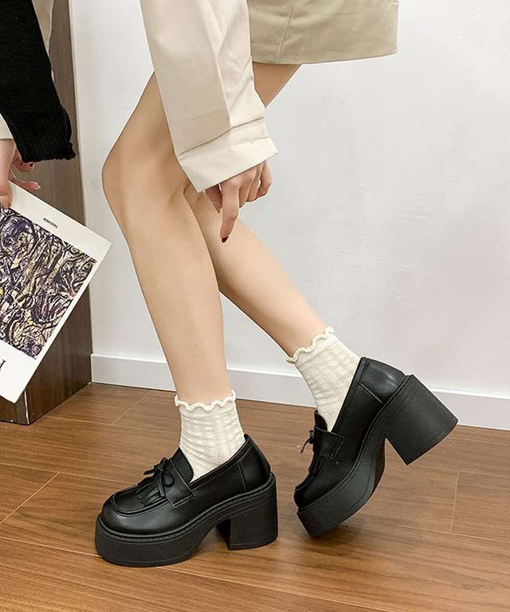 クラシックなデザインに存在感のある厚底ボリュームソールを組み合わせた旬なタッセルローファー。