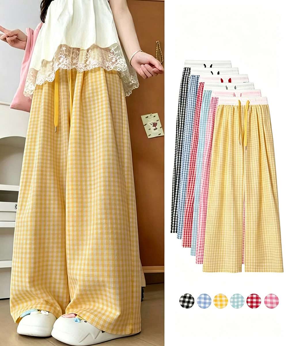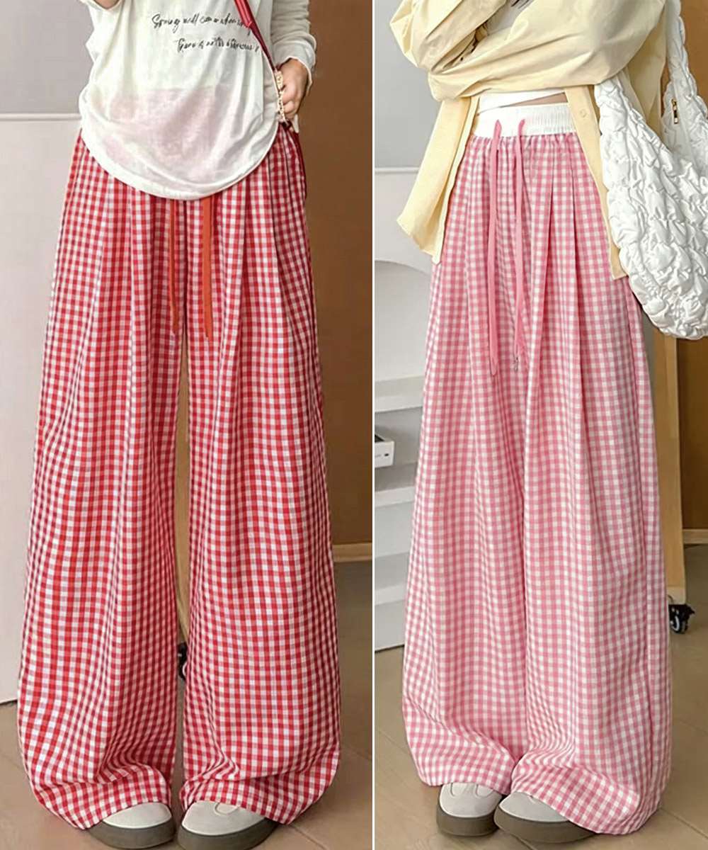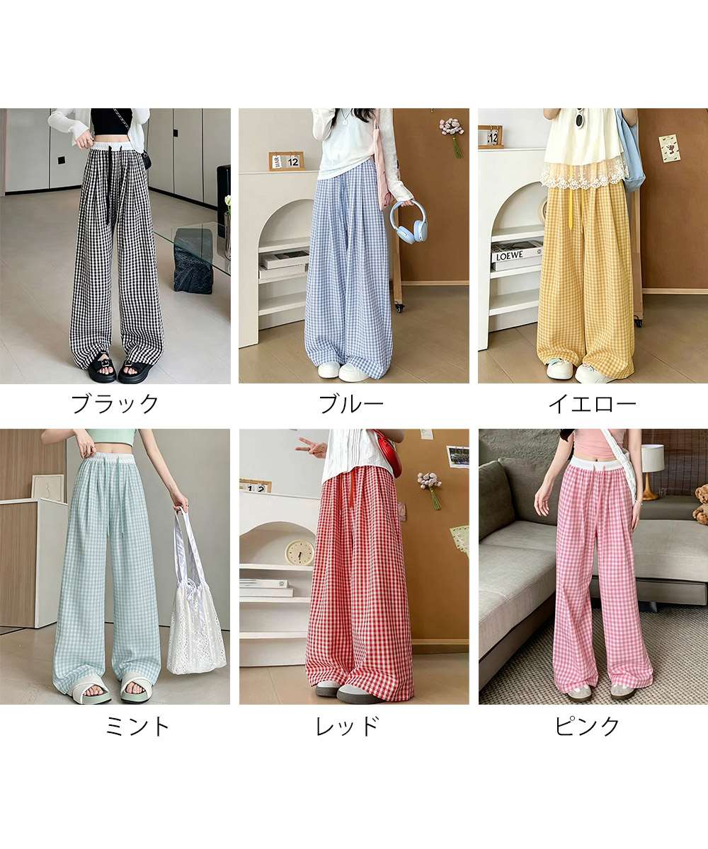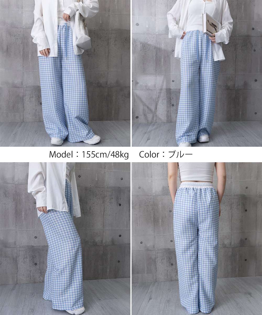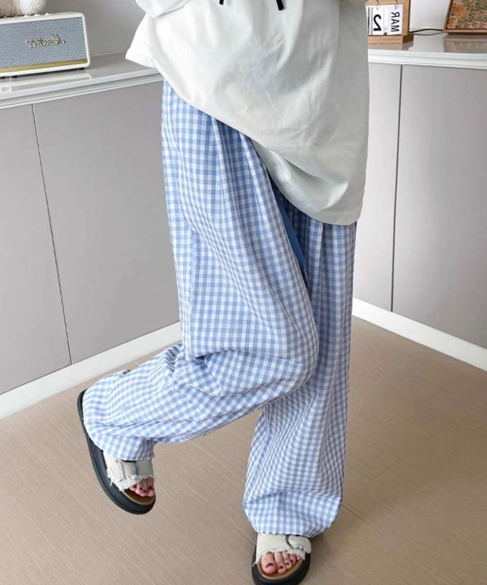 春夏に映える爽やかなギンガムチェック柄のイージーワイドパンツ。