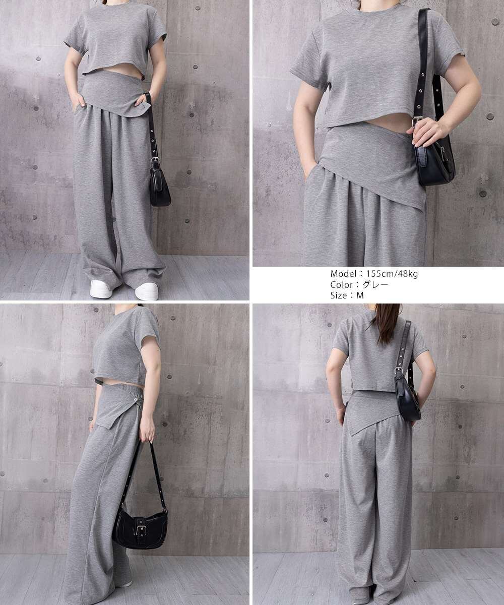 クロップド丈 トップス ワイド パンツ セット