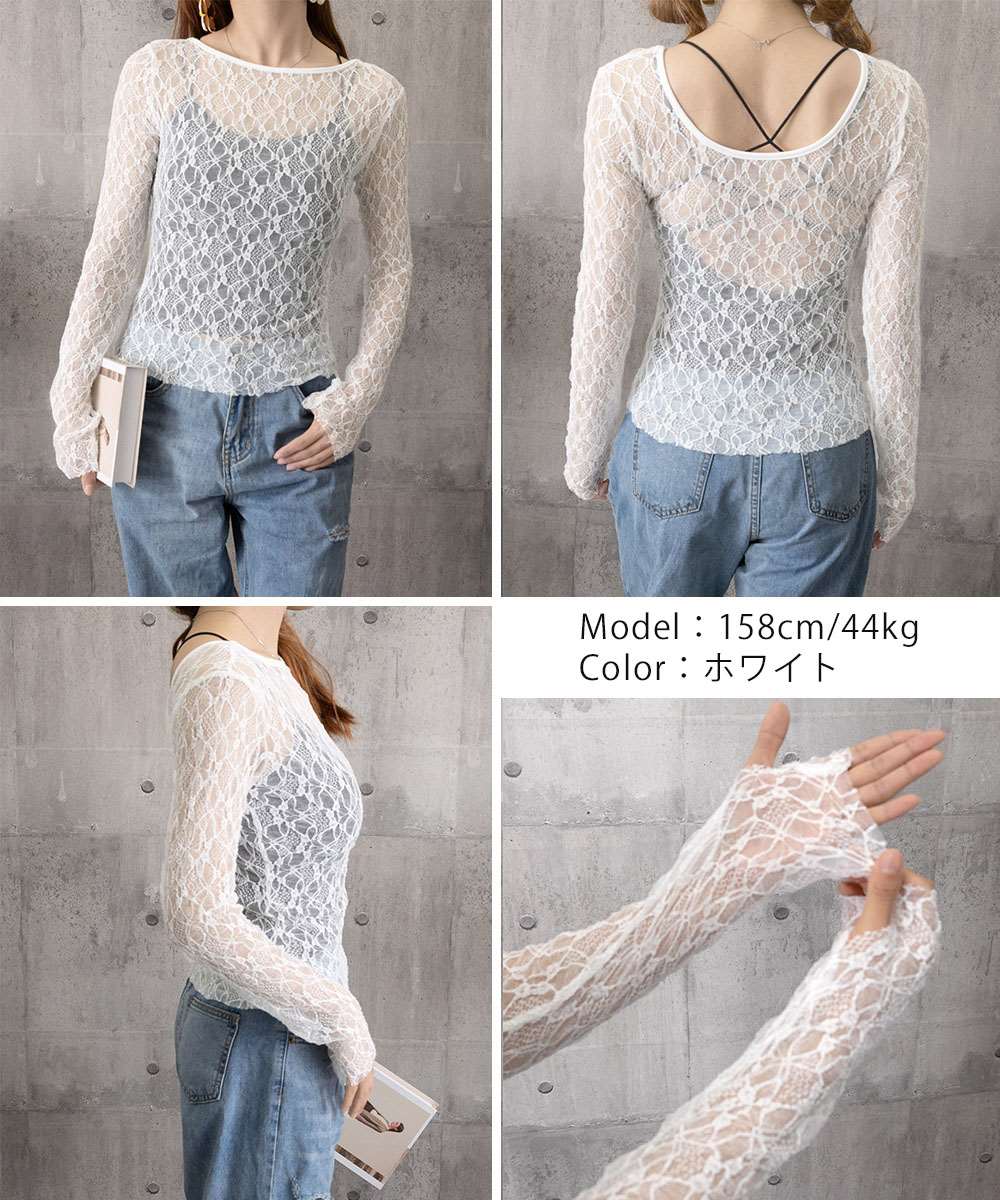 繊細なレース素材が目を引くフェミニンな長袖レーストップス。